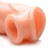 This extender sleeve gives you two whole inches of solid penis to plow into your partner! The realistic texture, featuring a bulbous head and bulging veins, along with a subtle curved shape will deliver a new kind of internal massage. Just lube up and put your entire package through the first hole, allowing your scrotum to go through the bottom hole for a satisfying stretch.