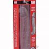 This extender sleeve gives you two whole inches of solid penis to plow into your partner! The realistic texture, featuring a bulbous head and bulging veins, along with a subtle curved shape will deliver a new kind of internal massage. Just lube up and put your entire package through the first hole, allowing your scrotum to go through the bottom hole for a satisfying stretch.