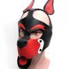 A puppy play hood designed for the fetish world, meticulously crafted from supple PU ( polyurethane) material and featuring premium alloy hardware, is a striking and functional accessory tailored for enthusiasts of the puppy play fetish scene.
