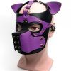 A puppy play hood designed for the fetish world, meticulously crafted from supple PU ( polyurethane) material and featuring premium alloy hardware, is a striking and functional accessory tailored for enthusiasts of the puppy play fetish scene.
