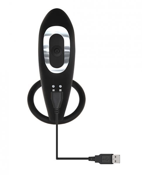 Adam and Eve Toys Adam’s Rechargeable Prostate Pleaser and Cock Ring from Evolved Novelties. Treat your P-Spot to exhilarating waves of vibration while your penis gets a delicious lift! Made from luxurious silicone, this toy’s head is designed to reach the prostate at the best angle to boost your intense pleasure while your penis gets harder and lasts longer with the snug fitting ring. Flexibility in the shaft helps the toy move with your body, and the powerful 10 speed motor revs up to match your desire, even underwater as it is completely submersible. The handle is easy on the hand and allows you to control the toy with one simple button that lights up as you play. Height 4.7 inches, 3.5 inches insertable, width 1.33 inches. Waterproof vibrations and submersible. USB rechargeable, cable included. 5 years warranty.