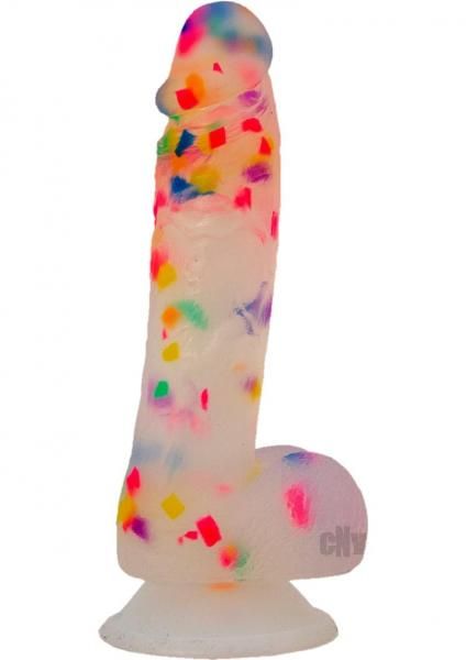 The latest addition to the best-selling ADDICTION collection of premium silicone dongs, PARTY MARTY is here! Get the party started with this frosted silicone dong with a fun rainbow confetti design, and realistic texture. This dong has a superior suction cup and is harness compatible so you can decide how you want to play.
