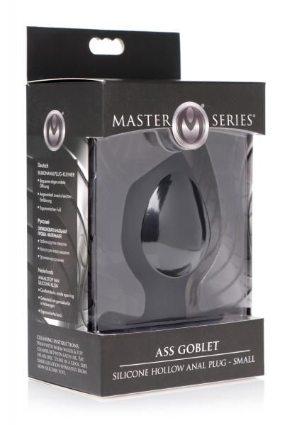 Quench your anal cravings with the Ass Goblet! This smaller version of the plug is hollow, but angled for easy insertion to set it apart from similar anal accessories. The comfortable, rounded opening assists with penetration, allowing the wide bulb to squeeze into you. Once inside, the hollow core leaves you open to a peek or a poke!
