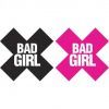 One black and one pink pair each of x-shaped pasties with bad girl on each. Eye Candy from Xgen Products.
