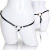 Thong-style harness that is so small it easily fits in your purse or under your clothes for an impromptu surprise. 3 way adjustable nylon straps fit up to 54 inch hips. (No dong included.) Ring size is 1.5 inches.