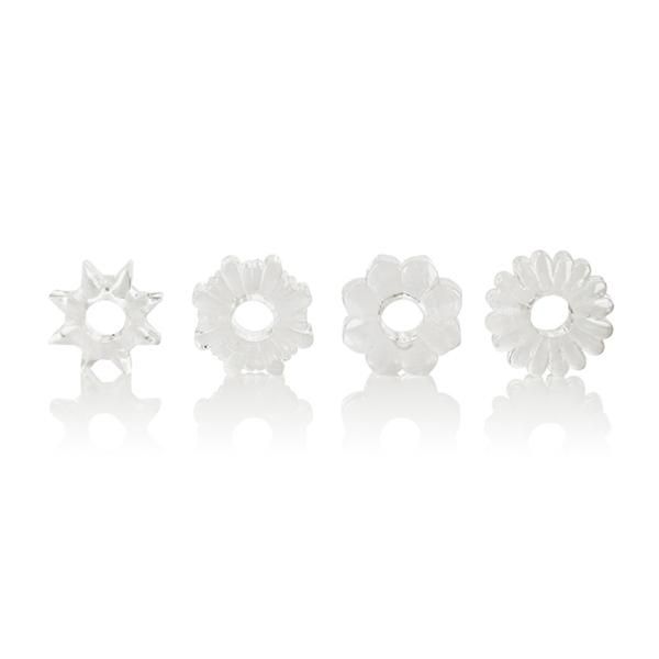 • Basic Essentials®… High quality, feature-packed products for couples that enhance lovemaking − at a price that can’t be beat! A great addition to any toy collection! • 4 super stretchy enhancers in assorted shapes • TPR • •.3”/ 1 cm (diameter)