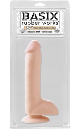 Basix Rubber Works 8 inches Dong with Suction Cup Beige Pipedream has put a new twist on a classic product to bring you the best possible rubber made in the USA. We hope you enjoy using this product as much as we like making it! Material PVC. Harness compatible o-ring strap on. Realistic penis probe vaginal, anal, prostate massage. Non-vibrating dong. Features and Functions , Suction Cup, Harness Compatible, Unisex.