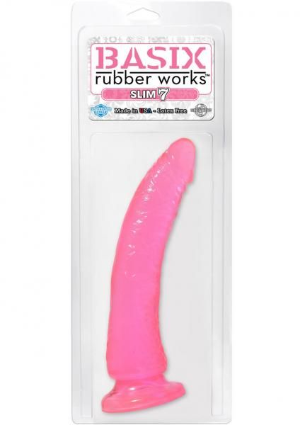 Basix Rubber 7 inches Slim Dong With Suction Cup Pink