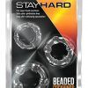 Blush Novelties Stay Hard exclusive toys for big boys. High quality luxury adult toys for every body type and feel. Blush Novelties exclusive product line will blow you away. Beaded Cock Rings Clear. For super hard erections. May aid in delaying ejaculation. Perform like the stud you are! These Stay Hard Cock Rings come in 3 sizes, so you can use them individually or all 3 at once. The Small Ring is for maximum erections; Medium Ring is for hard erections; Large Ring can be used to encircle the upper part of your scrotum to help prevent premature ejaculation. They are made of Elastomer, a super stretchy, comfortable and Phthalate Free material developed specifically for your safety and hygiene during your intimate play. So, if you are looking for a safe way to increase both in size and stamina, you and your partner are sure to enjoy Blush Novelties Stay Hard Cock Ring and your bigger, better erection that lasts even longer!
