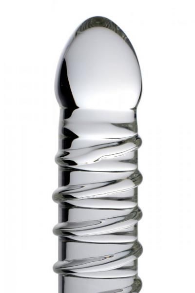 This longer, harder dildo will provide an internal massage that stimulates and relaxes! Rock hard and hefty, this shaft is made of shatter resistant glass and will offer a greater sense of fullness. A swirling texture of raised ridges will brush sensually against your inner walls with every thrust. Experiment with temperature play by submerging it in hot or cold water prior to use. This hypoallergenic material is non-porous, allowing for thorough sterilization with mild soap and warm water. Compatible with all lubricant types.