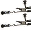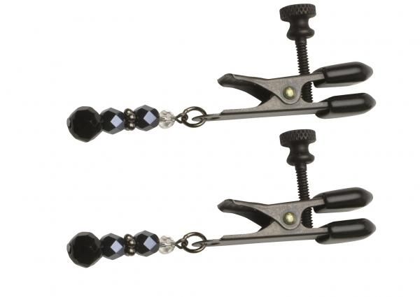 Slim, sleek, and lovely! Black Beaded Nipple Clamps adorn the body while creating pleasurable sensations without the weight of heavier clamps. They are adjustable to allow you the choice of light pressure of full-strength intensity and feature rubber tips for a comfortable and confident grip.