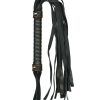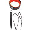 Keep them on a short leash! Perfectly pretty neck collar is lined with soft orange fur, while a sturdy leatherette band and strong metal clips provide structure and strength.