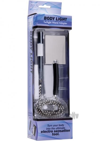 This state of the art electro conductor allows the user to turn their body into the ultimate sensation tool! Just place the flat steel conduction pad against your body, then plug the end of the adapter into your Zeus Twilight Wand (sold separately). Now you are ready to give your partner a sensory experience like no other! The sizzling electro stimulation flows from the wand, through you, and into your partner, turning your body into their own e-Stim toy! You can give them a light, tingling massage or a sensual sting. This pad is one of our lighter intensity conduction pads. Use your imagination, the possibilities are endless!