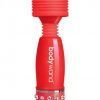 Soft-touch. Splashproof. Designed with subdued sound levels. Engineered for strong and continuous stimulation. Simple one finger control. Multi direction usage. Measures 4 inches height. Requires 6 x LR44/AG13 batteries. Color Red.
