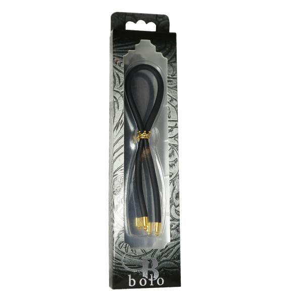 Bolo C-Ring Lasso Gold Crown Bead Silicone Black adjustable cock ring for prolonging male climax. Safe and pure for body and pleasure. Made using latex free and phthalate free silicone. Adjustable by moving crown bead up and down. One size fits most.