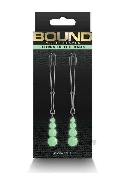 Bound Adjustable Nipple Clamps are for erotic and stimulating sensations. Made from nickel-free metal, Bound`s clamps feature silicone tips for a better comfort and fit. Glows in the dark.