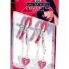 These easy to use nipple clamps have a simple screw down design, accented with heart shaped padlock detailing. The vinyl coated tips allow for a comfortable and secure grip while the red lacquered heart accent dangles enticingly from the end. The screws on the sides allow you to control just how much pressure your partner receives.