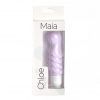 Maia Toys Chloe Silicone G-Spot Lavender Vibrator. Silicone twisty, curved, non-phallic shaft. Swirled pattern throughout with 15 vibrating pulsations. Waterproof vibrations. Vibrator requires 1 AA battery, not included. Made using body safe materials. 100% top medical grade Silicone. Size 5 inches by 1.2 inches. 90 day warranty.