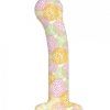 Collage Catch The Bouquet Dildo from Icon Brands. Premium silicone lovey toys, with beautiful, body safe coloring. Each piece is hand crafted for your unique pleasure. Eye popping designs tattooed right onto the silicone. Soft, silky and just the right size, they are colorful, whimsical, elegant and stunning. Each features and ultra grip suction cup which also makes them harness compatible. They quickly warm to your touch, are non-porous and easy to clean. Water based lubricant. Care gently soap and water to clean only, never an alcohol based soap. Size 7 inches in total length by 3.7 inches in width.