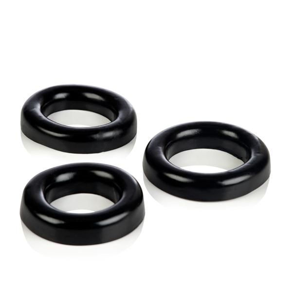 Receive a helping hand in the longevity department with this handy Colt 3 Ring Set! Maintain throbbing erections, prolong ejaculation, and enjoy the lasting pleasures you desire with the help of these incredible rings. The pliable rubber rings in three convenient sizes put a squeeze on performance letdowns and helps you last strong all night long. The inside diameters are 1.5in, 1.75in, 2in. The rings can be used by themselves or with condoms.