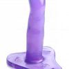 At seven inches in length, and nearly an inch and a three quarters in girth, this dildo is not necessarily ideal for penetration beginners, but the simple design does favor those who are new to pegging or female female strap on play. This material is compatible with silicone and water-based lubricants and can be cleaned after use with mild soap or toy cleaner. Measurement: Dildo measures 7 inches in length, 1.7 inches in diameter. Harness fits waists up to 46 inches in circumference. Materials PVC, nylon, metal. Color Purple.