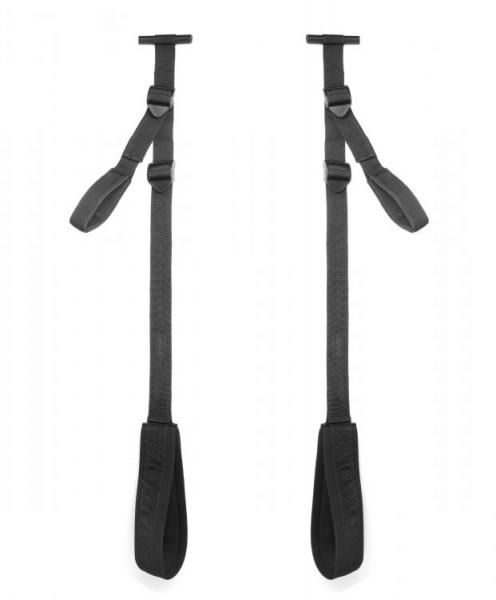 This simple, compact, and comfortable padded love swing just slips over the top of any doorframe, for multiple position possibilities in a super small package! Fully adjustable, it features two sturdy hand holds and two padded stirrups, which you can use for your feet or your legs. No drilling or installation required! Simply secure the dowel ends over the top of a sturdy, hinged door, and close it tight, being sure to pull on the swing to check that it is secure. Now you are ready to play! Holds up to 300 pounds, and the small size and versatile design makes it perfect for travel!