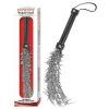 Flexible chains can be used for delicate tickles or hard spanks. Materials Wood and PVC, Pendants ABS, Chains iron. Dimensions handle length 7.25 inches, whip length 16 inches.