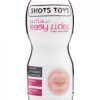 A great easy to use portable masturbator that features a super soft foam tunnel of love and feels just like the real thing. All you have to do is add lube and of you go. To use, remove the lid on top of it and slide your cock together with some lubricant into the silicone chamber. The stretchy silicone with stimulating ridges will not only feel comfortable tight it also massages and stimulates your shaft. Specifications diameter 2.55 inches, product length 6.18 inches. Material Cyber Skin. Phthalate free. From Shots Toys.
