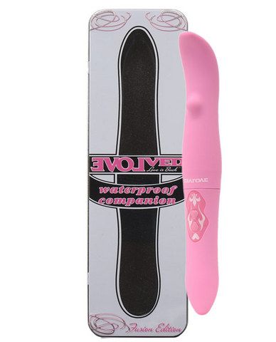 The two-headed Evolved Companion is waterproof and offers a breathtaking blend of form and functionality. With its 5.5in insertable length, artisan inspired design, and 16 finely-tuned functions of vibration and pulsation, you will achieve an unparalleled synthesis of harmony and bliss. Uses four AAA batteries, not included.