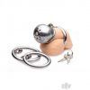 If you have no need for it, lock away your partners penis! This beautiful and unique chastity device wraps up that cock in tight stainless steel, leaving a number of holes open to allow for urination and airflow. Three different sizes of O-rings are included to find a comfortable or uncomfortable fit, depending on what your slave deserves. The most unique feature of this device, however, is the internal locking system. Insert the key into the brass keyhole and turn to straighten out the lock. The lock can then be inserted into the hinge. With another twist of the key, your slave will recognize your complete control. Measurements: O-rings are 1.5, 1.75, and 2 inches in diameter. Cage is 1.75 inches in length, 1.25 inches in diameter. Material: Stainless steel. Color: Grey. Note: Includes locking mechanism and two keys.