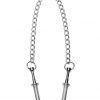 Measurements 2.85 inches in length, 0.3 inch maximum opening diameter. Material Stainless steel. Color silver. Note contains 2 clamps connected with a chain.