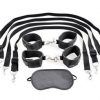 Cuff your lover to your mercy. Let them know you are in charge! The adjustable tethers can be tied to just about anything you can conjure up, the only limitation is your imagination! Kit includes: 4 adjustable fantasy cuffs, 4 adjustable tethers and a free Love Mask.