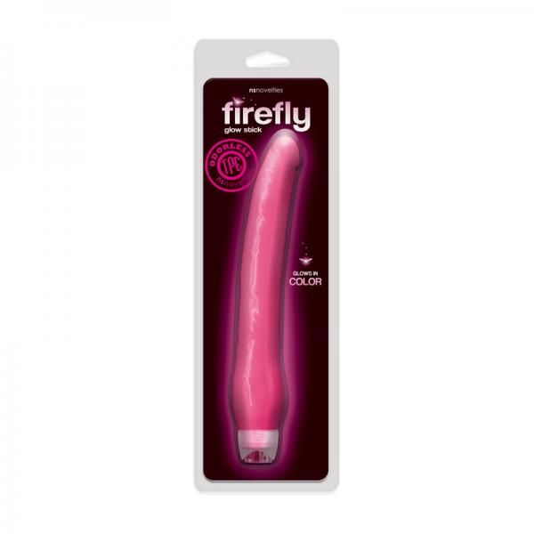 Firefly Glow Stick Pink Vibrator from NS Novelties. Fireflys Glow Stick vibrator, featuring synchronized dual motors and draped in luxurious Thermoplastic Elastomers TPE, will light up the night with mischievous deep rumbles of pleasure. Waterproof, powered by 2 AA batteries, not included. Suitable for all lubricants, this 11 inches long vibrator delivers unexpected excitement and satisfaction.