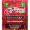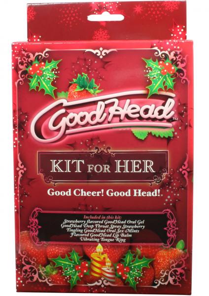 Transforming average head into Good Head! The Good Head Kit for HER provides everything you need to give her some extra-special oral love. Flavored Good Head lip balm will have your lips in prime pussy eating condition. Delicious Strawberry flavored oral gel will have you down there for seconds and thirds. Put one of the oral sex tingling mints in your mouth to increase her sensitivity. Slip on the one size fits all disposable vibrating tongue ring and watch her ecstasy soar to new heights! Think you`re an expert? Learn some new tricks with the included Good Head for HER tips card. Kit includes: 1 FL. OZ. (29.6 ml) Strawberry flavored Good Head Oral Gel, 4-Pack of Tingling Good Head oral sex mints, Flavored Good Head lip balm, Vibrating Tongue ring (2 cell batteries included), and Good Head tips card.