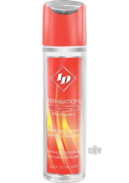 Improved formula. Warming Lubricant! Wild Warmth! ID Sensation Warming Liquid warms on contact, providing increased excitement and enhanced intimacy. The perfect product to heat up your love life. Water based, water soluble and latex condom compatible. Features: Warms on Contact, Latex Safe, Water-Based, Non-Staining, Adult Toy Safe, Increases Stimulation.