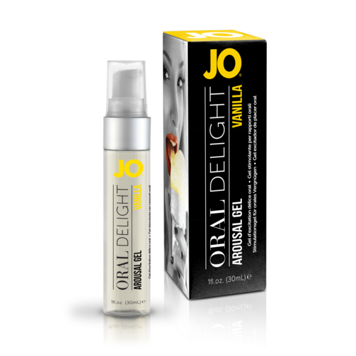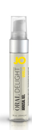 System JO Oral Delight Arousal Gel Vanilla 1 ounce travel size. Paraben free. Made in the USA