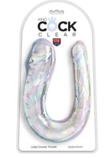 Delve into fantasies involving multiple partners without the need for additional participants–or any partner at all! Whether you prefer switching between the thick and thinner ends or enjoy indulging in double penetration fantasies, the King Cock Clear Double Dildo is the perfect choice for you.