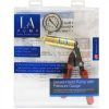 This package contains everything you need to begin a penis enlargement regimen. The LA Pump Deluxe Pump features full metal construction, a hose, and a pressure (PSI) gauge for accuracy and safety. The pump has a vacuum release valve to use when the session is completed. Durable and designed for one-hand use, the pump is not suitable for wet use.