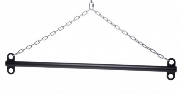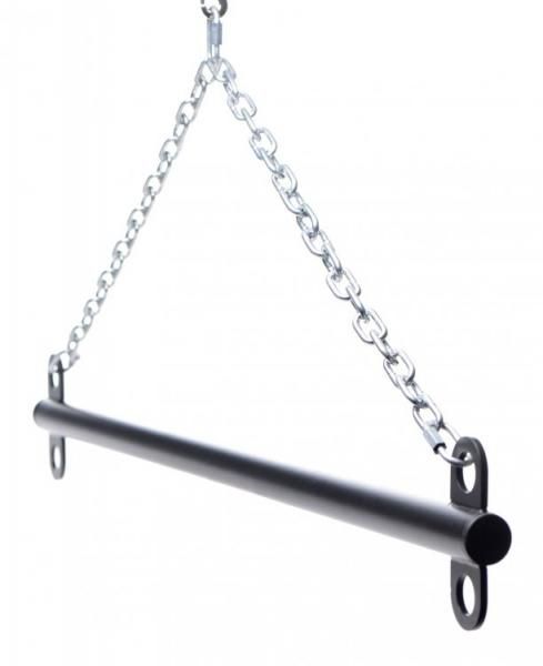 Spread them wide and suspend your lover to your whims! The Levitate Suspension Bar is made to be hung from a solid ceiling anchor point so you can suspend your lovers arms or legs in the air, locking up their limbs and exposing their body to all kinds of fun. Tease them, please them, or punish them for their bad behavior! This suspension bar can hold up to 350 lbs with confidence, and spreads your partner with 36 delicious inches – suspend their legs and support their body with a table or bench and enjoy their forbidden fruit, or suspend their hands, blindfold their eyes, and gag their mouth for a more traditional BDSM scene. Handles and wrist cuffs sold seperately. Measurements : Bar length 36 inches, bar diameter 1.25 inches, chains length 20 inches Materials : Steel Color : Black Note : Handles and wrist cuffs sold separately