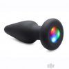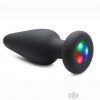 Light up the night with this light-up anal plug! Have some fun with your booty play and give your partner a light-show at the same time. This silicone anal plug has an LED light that shines red, green and blue and switches between 3 different light patterns! Find your partner in the dark or play some music that matches the pulsing beat of the LED light-show! This anal plug is tapered for easy insertion and comfort and is made from premium silicone so it?s smooth upon entry and body-safe to wear! The plug includes 2 LR41 batteries for the LED lights and all materials are phthalate-free and nickel-free. Easy to clean, the LED light pops out of the base to make washing the silicone with warm water and soap simple. Use only with water-based or oil-based lubricants. Measurements : Overall length: 3.4 inches, Insertable length: 2.8 inches, Diameter at widest point: 1.2 inches Materials : Silicone, ABS plastic Color : Black, LED colors: red, blue, green