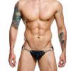 Male Basics DNGEON Chain Jockstrap Black O/S is hanging for display. The Chainlink Jockstrap is made of strong faux leather in sleek black. With minimal coverage at the back, sweat can evaporate more freely offering the wearer a more comfortable fit. A chain link pouch at the front supports the penis without scrimping on sex appeal, while wide straps sit on the hips for a supportive finish. More information SKU DMBL02. Color Filter Black. Material Faux Leather Jock Strap, metal rings, chains. Brand DNGEON. Faux Leather, Metal rings materials. How to measure for size: take a measurement tape and your posture should be nice and straight, without holding in or sticking out your stomach, Locate the bones on the right and left side of the abdomen. For Male Basics Underwear measure approximately 5 Inches under the belly button. Now locate the range between any of the values on the table and that would be your size. One size fits men with 30 inches to 36 inches waist.