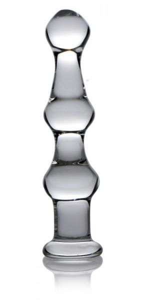 Penetrate yourself with a beautiful glass dildo, distinctly shaped for explorations of ecstasy! The three bump design allows you to move at your own pace as you pleasure yourself vaginally or anally, savoring the smooth, hard material. This shatter resistant glass is perfect for experimenting with temperature play, heating or cooling the dildo in water before insertion. Because it is non-porous, you can always ensure a thorough sanitization with mild soap and warm water. Glass is hypoallergenic and can be used with any lubricant of your choosing.