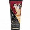 Shunga Erotic Art Massage Cream Chocolate exquisite taste. Silky smooth, edible and moisturizing. Slides on easily and is long lasting. Leaves the skin feeling fresh and non-greasy. This cream will leave the skin tasting delicious! Caress your partner with this delectable massage cream. Get close to your lover with this tasty treat and feel the softness of their skin against yours. Let the sexual tension rise and bring eroticism to a peak!