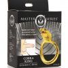 Surprise your partner with this royal Cobra King ring! With a gold cobra snake as the ring and glowing red eyes, they will be impressed by the stunning serpent in front of them – and it makes your trouser snake look good, too! It`s not only something beautiful to behold, it helps you keep an erection longer so you can enjoy enhanced sexual experienes. Made of zinc alloy, the metal is nickel-free for sensitive skin. Each red eye is made of acrylic. The ring is designed to be evenly weighted so it can stay comfortably in place on the center of your shaft with the cobra head standing up as much as your own serpent stays erect! To clean it, simply use water and mild soap after every use and spray with a toy cleaner. Because it is made of metal, this sexy snake is compatible with any lubricant type. Grab some lube and slide this onto a semi-erect or flaccid dong, slipping each testicle in and then pulling the shaft through after. Adjust so the cobra is facing up and stroke yourself so you get erect. The constriction ring helps maintain your hard-on longer so you can enjoy a longer solo or partnered session. Add a little spice into your play by running the ring under hot or cold water before wearing it to add in temperature play!