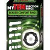 Ten beaded cockrings, individually packed for travel, are made of super stretchy Thermoplastic Elastomers TPE and are waterproof. Outer diameter is 1.375 inches, inner diameter is 0.625 inch.