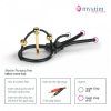 For the fancy: with this 24K gold-plated urethral sound flanked by two golden balls, the Plunging Pete stimulates the glans from both outside and inside. The urethral probe has a slim diameter of 4 mm that is easily inserted even if you’ve never done that before. The short length of 35 mm takes good care that it is the tip and nothing but the tip that gets flooded with tingly goodness. Around the balls and the probe, the tingling and pulsating is especially intense, because the gold not only makes the stimulation more even but also focuses the sensation where it touches the skin. And because every corona is a little different, you can move the golden elements along the upper strap to those points where the stimulation feels best. Like his cousins: Pure Pete who abstains from any gold whatsoever, and Pearly Pete who features three gold balls – Plunging Pete consists of 100% medical-grade platinum silicone; that makes him not only very hygienic but also easy to clean. The lengths of his two straps that go around the corona and over the tip are continuously adjustable so that you can fit Pete’s size perfectly to your anatomy. Before we let Plunging Pete out to play, the probes and balls of each and every one are checked by hand before he gets all wrapped up in a neat black metal case which also contains the matching electrode cable for our e-stim devices.