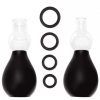 Keep your nipples stiff and sensitive with this nipple erector set and experience pumping pleasure! To start, take the pump with the smallest opening. Slide the rubber ring of your choice over the opening and place it on your nipple. Squeeze the air reservoir until you reach the desired result. Slide the rubber ring around your nipple to keep it hard and sensitive. Repeat these steps with your other nipple. To get the nipples even bigger, use the pump with the wider opening. Have fun!