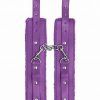Ouch! Plush Leather Handcuffs Purple from Shots Toys. The Ouch! Plush wrist cuffs have been designed with comfort in mind while being tied up in your play! The cuffs have a furry lining, an adjustable strap with a sturdy clasp for a perfect fit and an attached ring for easy hook ups!