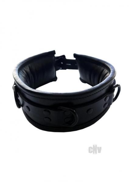 This sexy luxury leather padded collar with all black accessories offers comfort with its soft leather lining, perfect for all players. Includes a padlock-able buckle for extra restriction. Keep you sub inline by attaching a leash to one of multiple D-rings.