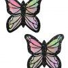 Monarch Glitter Pastel Rainbow Butterfly Nipple Pasties by Pastease are hand made in the USA of durable no mess glitter pleather material that forms to curves and resists wrinkling over hardening nipples. Just peel and stick on clean, dry skin. All Pastease feature latex free, medical grade, waterproof adhesive that stay securely in place for as long as you like and until they are gently removed. Conceal or reveal with Pastease nipple pasties when worn with a sexy outfit, daring bikini, sheer top, revealing dress, Hefty bag, body lotion, crazy costume, party theme or nothing at all! Dimensions 3.3 inches by 3.2 inches. Coverage diameter 2 inches. Pastease are the fun maker that brings out your inner tease!